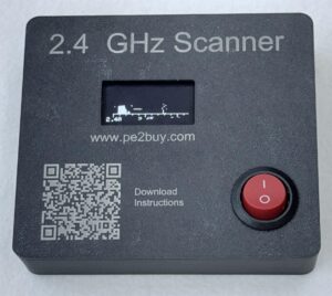 Our 2.4-GHz Scanner is a small 9v battery powered device that shows a simple view of what is happening in the 2.4 band. It scans the band and displays how often a signal is present at any frequency within the band. If there is a source of continuous signal within the band, it will display that all the way to the top of the screen.